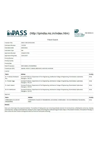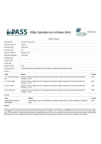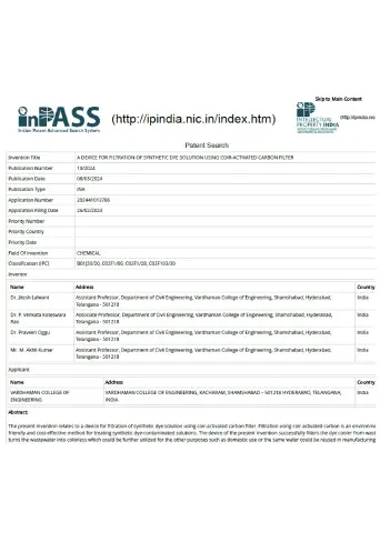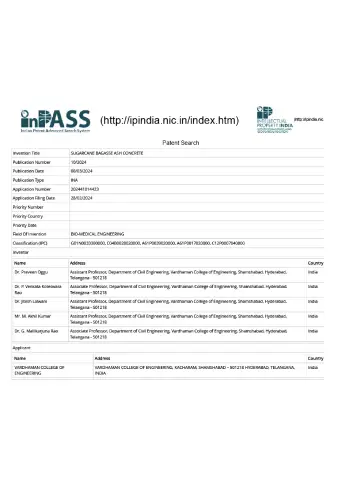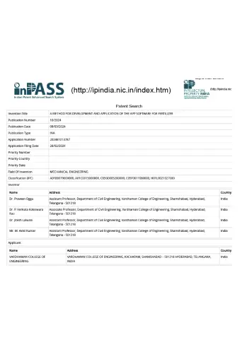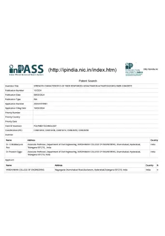 The Department of Civil Engineering actively fosters a strong culture of research, innovation, and intellectual property creation. Faculty members and researchers of the department have made significant contributions through patents, technical disclosures, and innovative solutions addressing emerging challenges in sustainable construction, smart infrastructure, advanced construction materials, transportation systems, water resources, geotechnical engineering, and environmental engineering.